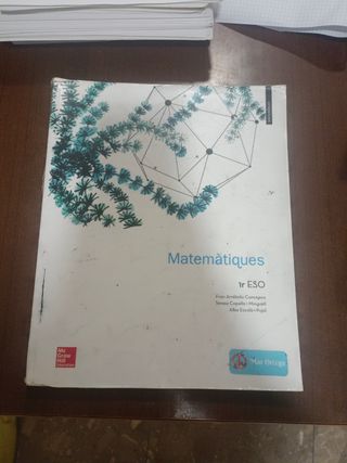 Libro de matemáticas en catalán para 1 ESO de la editorial McGraw Hill El libro tiene las hojas sueltas por un defecto de fábrica, pero están todas Seguramente si lo compras nuevo te pasará lo mismo Se podría volver a encuadernar Tiene u as pocas anotaciones