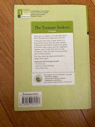 Libros LECTURA ESCOLAR de inglés para la ESO - DBH. Editorial BURLINGTON Niveles por colores: • Verde - 1° ESO - The Ghost Teacher - The Adventures of Captain Crossbones - Five Children and It • Naranja - 2° ESO - British Myths and Legends - Adventures of Tom Sawyer - The Mysterious Circles • Morado - 3° ESO - The Ghost of the Green Lady - The Invisible Man - Myths and Legends • Amarillo - 4° ESO - The Monkeys Paw - The Secrets of Silver Lake - More Strange Tales Precio individual 5€. Si se cogen TODOS, cada libro a 4€.
