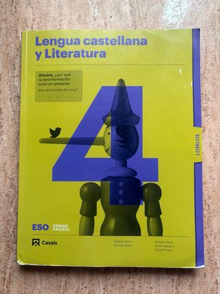 Libro de Lengua castellana y Literatura de 4° de la ESO en muy buen estado. Solo tiene algunas cosas escritas a lápiz, no está pintado, ni dibujado, ni subrayado. Está prácticamente nuevo.