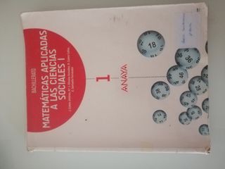 Libro matematicas aplicadas a las ciencias sociales Editorial anaya ISBN: 9788469609163