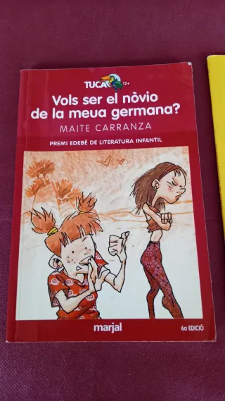 3 Libros tapa blanda de segunda mano y en perfecto estado. 1. Título; Vols ser el nòvio de la meva germana? Autora: Maite Carranza Editorial: Edebé (sello Marjal/Tuca) Premio: Premio Edebé de Literatura Infantil 2. Título; L'ànec i el salze (El pato y el sauce) de la autora Mariasun Landa. 3. Título; "La Rateta que col·leccionava col·leccions" de Rosa Sabater y Dolors Todolí. Escrito en valenciano. Publicado por la editorial Marfil en la colección "El Drac de Paper". Tiene 37 páginas y encuadernación en tapa blanda. Las ilustraciones son de Dolors Todolí