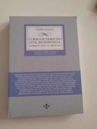Libro CURSO DE DERECHO CIVIL PATRIMONIAL - Introducción al derecho Autor: Carlos Lasarte Editorial: tecnos El libro se encuentra en perfecto estado, ya que lo usé muy poco. Se usa en algunas asignaturas del Grado Economía/ Empresariales UNED. Cualquier duda, ¡escríbeme!