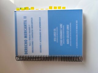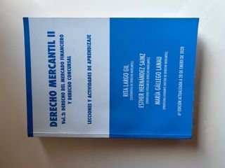 Libros de texto de Derecho Mercantil II, vol.1: títulos valores y obligaciones y contratos mercantiles; y vol.2: derecho del mercado financiero y derecho concursal. Están nuevos y forrados. Solo hay una hoja de apuntes escrita a lápiz.