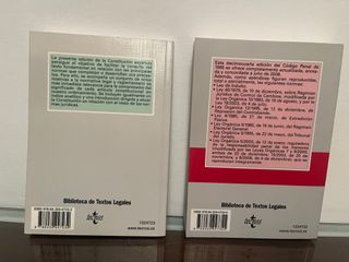 Pack de Constitución Española y Código Penal - por favor, fijarse en el número de la edición y en el IBAN. no son la última edición Ideal para consulta, estudio y cultura jurídica básica Muy útil para estudiantes de derecho, opositores o curiosos del tema Libros en buen estado, listos para usar Perfectos para tener una base jurídica en casa Mejor en lote que por separado