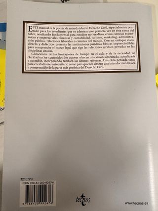 Libro de principios del derecho civil I: parte general y derecho de la persona. El autor es Carlos Lasarte y es la duodécima edición. Esta como nuevo y se encuentra en Cádiz capital pero realizo envíos. Contiene un segundo libro practicum. Tienen 513 y 144 páginas respectivamente.