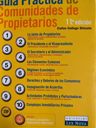 Guia práctica para dirigir las comunidades de propietarios y de vecinos. Presidente, vicepresidente, secretario y administrador. Elementos comunes. Régimen económico. Derechas y deberes de los comuneros. Impugnación de acuerdos. Actividades prohibidas y perturbadoras. Complejos inmobiliarios privados. Etc. Libro técnico muy útil para entender todo el tema relativo a las conunidades de propietarios y de vecinos, incluye casos prácticos y apéndice legislativo. Libro procedente de biblioteca privada. Figura el nombre del propietario en la primera hoja. Hago envíos.