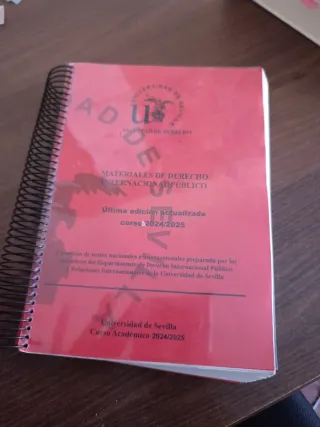 Libro de derecho internacional público, US. Tiene un par de términos subrayados, el resto intacto