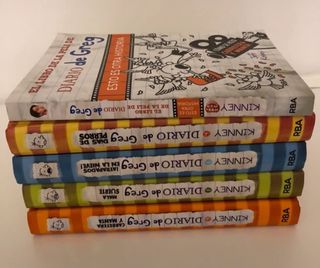 Libros de la colección el diario de Greg números: 4, 9, 10, 11 y 12. El Número 10 tiene un nombre tachado en la última página, como se muestra en la foto. Los libros están muy bien conservados sin dibujos ni nada.