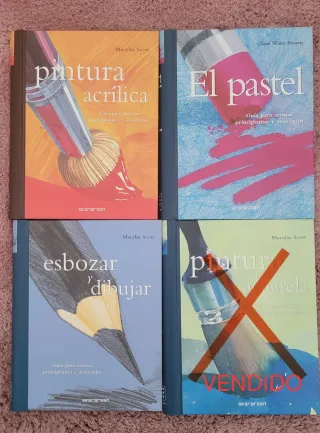 Conjunto de cuatro libros para aprender técnicas de pintura y dibujo. - Pintura acrílica por Marylin Scott. - El pastel por Claire Waite Brown. - Esbozar y dibujar por Marylin Scott. - Guías para artistas principiantes y avanzados.