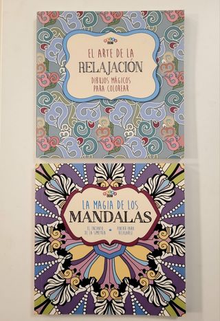 Se venden dos libros. La magia de los mandalas Libro con 90 artísticos mandalas para pintar. Halle la tranquilidad, la relajación y la serenidad con la ayuda de estas figuras y patrones que le invitan a meditar. Sumérjase en el mundo de las formas y los colores. Y El arte de la relajación: Dibujos mágicos para colorear (Relax Art). Remedio antiestrés para el día a día. Libro con 90 ilustraciones para pintar. Halle la tranquilidad, la relajación y la serenidad con la ayuda de estas figuras y patrones que le invitan a meditar. Técnica de relajación a través de la pintura: para descansar, reducir el estrés y respirar profundam