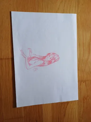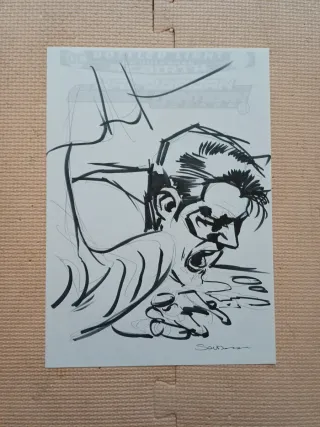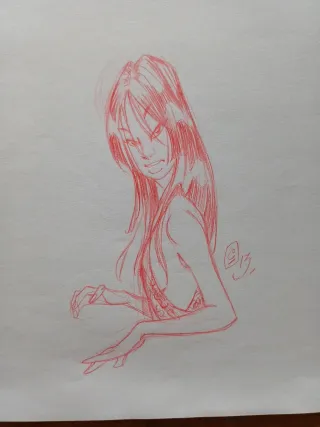 Dibujo original de Crissé, dibujante belga famoso por La Espada de Cristal, Tello y muchos otros. Lápiz rojo sobre papel. Firmado.