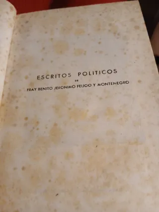 Escritos políticos de Fray Benito Jerónimo Feijóo. Teatro crítico universal y cartas eruditas. Selección, edición, estudio preliminar y notas de Luis Sánchez Agesta Biblioteca Española de Escritores Políticos. LXXXIII-590 páginas. Una lámina fotográfica con el retrato, a dibujo, de Feijóo. Sello del autor en la primera medio borrado e iniciales en la portada 1946