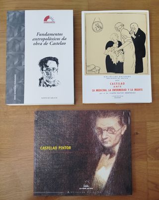 *8€: - Os dous de sempre. Galaxia. 9788471541949 - Os dous de sempre. 9788482887418 - Cousas. 9788482887814 - Retrincos : un ollo de vidro. 9788482884448 - Os vellos non deben de namorarse. 9788482884028 *12€ - Castelao pintor. Galaxia (Literaria). 9788482889498 *15€ - Fundamentos antropolóxicos da obra de Castelao. Anxo González Fernández. 9788445325018 *20€ - Castelao ante la medicina, la enfermedad y la muerte. Ramón Baltar Domínguez. Bibliófilos Gallegos (Biblioteca de Galicia, XVIII). 848542008X