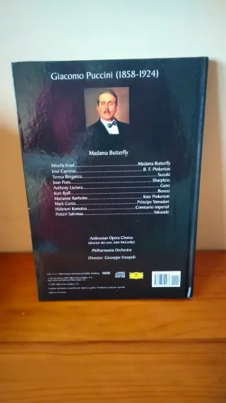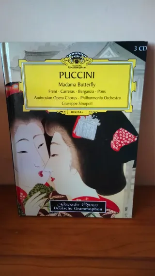 En perfecto estado.Edición de Madama Butterfly de Puccini, que incluye el libro y 3 CDs. - Grabación digital. - Intérpretes: Freni, Carreras, Berganza, Pons. - Coro: Ambrosian Opera Chorus. - Orquesta: Philharmonia Orchestra. - Director: Giuseppe Sinopoli. - Sello discográfico: Deutsche Grammophon. Año 1987.