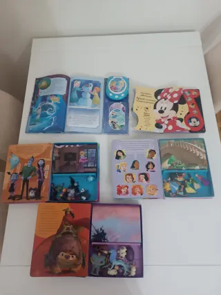 Lote de 5 libros de Disney 3 con figuritas y tapete y 2 musicales.En muy buen estado.Tienen todos los accesorios originales. -Frozen Melodías Mágicas: viene con un reproductor musical y 3 mimi CDs. -Mickey y sus amigos: es un libro musical táctil. -Raya y el Dragón Mágico: viene con las figuritas y un tapete para jugar. Vampirina: viene con las figuritas y un tapete. -Princesas Grandes Aventuras: Viene con figuritas y un tapete
