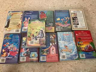 Colección 18 VHS Walt Disney: La bella durmiente, Mary Poppins, El libro de la selva, Jorobado de NotreDame, Blancanieves, Merlín, Pocahontas, Tarzán, Peter Pan, 101 Dálmatas, Basil El ratón super detective, La dama y el vagabundo 1 y 2, Rey León, La bella y la bestia, Goofy, Los otros leones Disney. Colección 11 varios VHS: Harry Potter, Sonrisas y Lágrimas(precintada), Power Rangers, Titanic, Oliver Twist, David y el gigante de piedra, El príncipe de Egipto... 5€/unidad y 100€ lote. W50