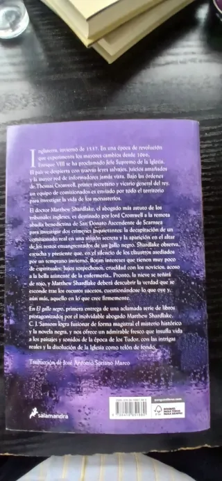 Libro El Gallo Negro de C.J.Sansom,en que se basa la mueva serie de Disney de MATTHEW SHARDLAKE