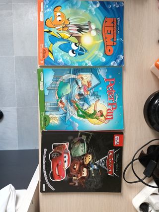 libros infantiles: Buscando a Nemo (Disney), Peter pan (Disney) y Cars (Pixar). 3€ por libro