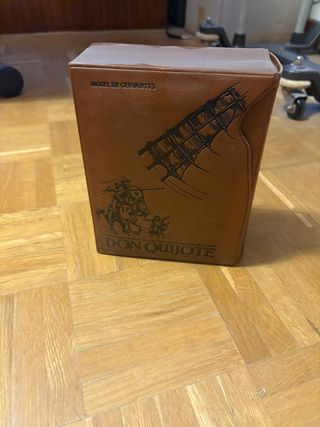 Dos tomos con la historia del ingenioso Hidalgo don Quijote de La Mancha, obra de Miguel de Cervantes. Cuenta con ilustraciones a color. Más de mil páginas entre ambos volúmenes.