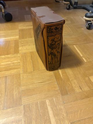 Edición de gran lujo de 1879 del libro El Ingenioso Hidalgo Don Quijote de la Mancha. Tomos I y II. Con Ilustraciones de D. Ramon Puggiari. Buen estado para su antigüedad. Cubierta de cuero en buen estado. Las páginas interiores algo amarillentas por la edad, pero en muy buen estado de conservación en general