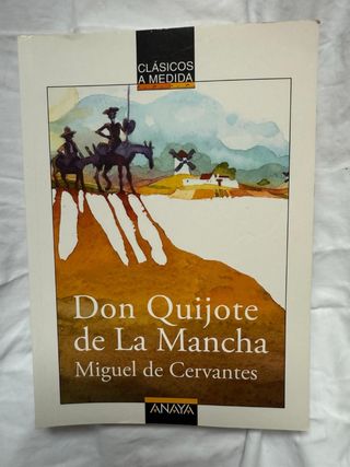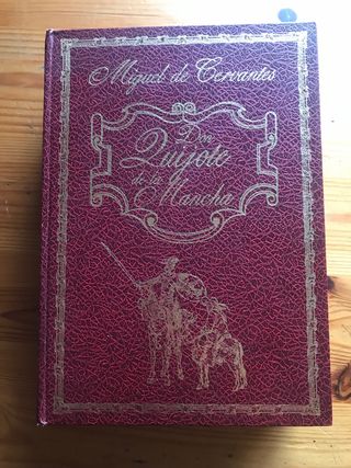 Vendo ejemplar de Don Quijote de la Mancha en tapa dura, en muy buen estado. Tiene un pequeño roce en la portada (ver foto). En la primera página está escrito mi nombre a bolígrafo, pero el resto del interior está como nuevo: páginas limpias, sin manchas ni dobleces. Precio: 12 € Entrega en mano o envío por Wallapop.