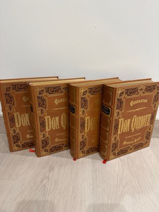 Don Quijote de la Mancha – Edición lujo 4 tomos (Gustavo Doré) Colección en muy buen estado general. Tapa dura símil piel con estampaciones en dorado, cantos dorados y cinta de lectura. Edición de lujo de Don Quijote de la Mancha de Cervantes en 4 volúmenes, con todos los grabados clásicos de Gustavo Doré. Ideal para coleccionistas y amantes de los clásicos que quieran una edición bonita para leer y lucir en la estantería.