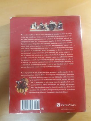 Se vende libro de tapa dura: "Don Quijote de la Mancha" escrito por Miguel de Cervantes. El libro está en castellano, algo desgastado (sobre todo por fuera), pero no influye en la lectura. Tiene 158 páginas. El precio es totalmente negociable. Si te interesan otros libros aparte de este, dímelo y te lanzo una oferta.