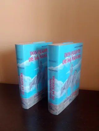 Edición de lujo limitada de la obra de Miguel de Cervantes, publicada por Planeta en 2004 para conmemorar el IV centenario de su primera edición. Incluye más de 600 ilustraciones del inigualable Antonio Mingote y cuenta con la edición y notas a cargo de Martín de Riquer. La obra se presenta en dos volúmenes encuadernados en microfibra marrón con detalles en oro, ambos en perfecto estado. Son tomos de gran formato (31 x 37,5 cm) con 408 y 392 páginas respectivamente, cada uno acompañado de su estuche protector. La tirada fue de sólo 3.000 ejemplares, certificados notarialmente, en una edición única.