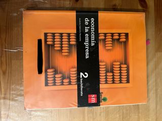 Libro de economía de la empresa. Curso 2° de bachillerato. Editorial SM. ISBN 9788467534818. El libro está subrayado con rotuladores fluorescentes y escritos con lápiz.