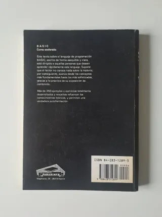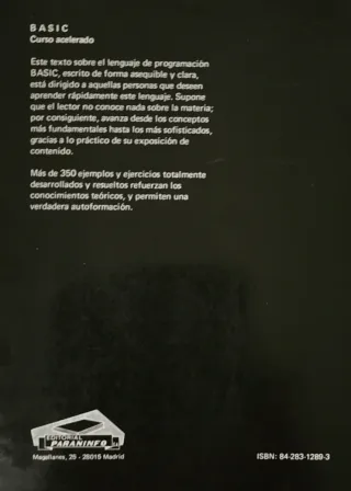 BASIC curso acelerado, escrito por Claude J. De Rossi y publicado en 1989 por editorial Paraninfo, con 224 paginas.