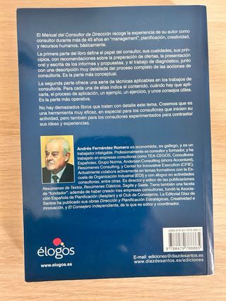 El Manual del Consultor de Dirección recoge la experiencia de su autor como consultor durante más de 45 años en management, planificación, creatividad y recursos humanos, básicamente. La primera parte del libro define el papel del consultor, sus cualidades, sus principios, con recomendaciones sobre la preparación de ofertas, la presentación oral y escrita de los informes y propuestas y el trabajo de diagnóstico, junto con una descripción muy detallada del proceso completo de las acciones de consultoría.