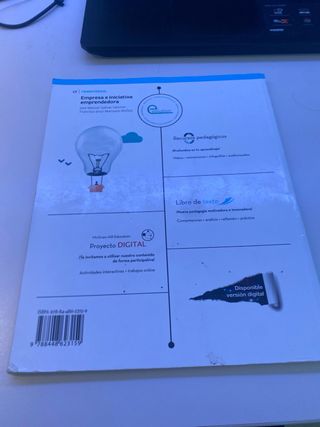 Vendo el libro de texto "Empresa e Iniciativa Emprendedora" utilizado en institutos, ideal para estudiantes que cursan asignaturas de emprendimiento y gestión empresarial. Este libro cubre los conceptos básicos sobre creación y administración de empresas, incluyendo temas de planificación, innovación, y desarrollo de ideas de negocio. Perfecto para preparar exámenes y adquirir conocimientos fundamentales sobre el mundo empresarial. Está en muy buen estado, sin subrayados ni páginas dobladas.