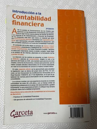 Contabilidad financiera (Antonio García Castellví, Juan Antonio Astorga Sánchez y Ana Ma González Navarro) Análisis y aplicación del PGC de 2007. Libro utilizado en Grado de ADE, en buen estado.