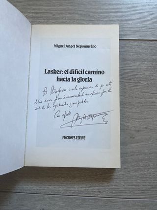 El singular ajedrez de Enmanuel Lasker ha marcado su impronta en este juego. La enorme figura de este campeón nos es mostrada aquí en toda su grandeza, en una obra magna y reverencial que el autor ha trabajado durante casi dos decenios de su vida Ejemplar firmado y dedicado por el autor Miguel Ángel Nepomuceno Booksareback. Envíos