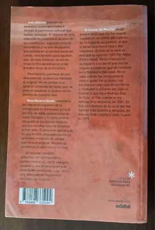 Libro “Cantar de Mio Cid” de la editorial SM en perfecto estado.