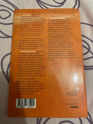 Libro de lectura Cantar de Mío Cid adaptación de Rosa Navarro Durán esebé ISBN 9788468335094 Impecable, una lectura, forrado. NADA escrito NADA subrayado Más libros en mi perfil