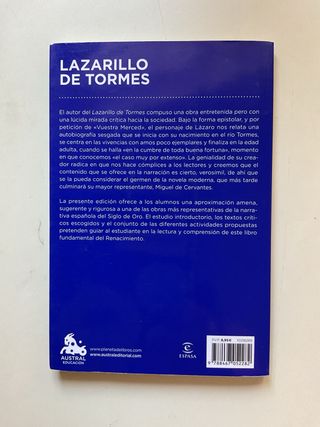 Unas 20 de 125 páginas con anotaciones y subrayados. Nuevo 13,92€ ISBN 9788491221722 El Lazariilo es una novela de formación que denuncia problemas como la injusticia social, la hipocresía y la corrupción. Su protagonista es un antihéroe, un individuo perdido en una sociedad que le oprime y donde no acaba encontrar su lugar.Publicado en 1554, el Lazarillo es -con el permiso del Quijote- nuestra primera gran novela. A través de las andanzas de su narrador y protagonista, Lázaro de Tormes, no solo asistimos a un irónico y divertido retrato de la sociedad de su tiempo, sino que también somos testigos de ese proceso universal que es el