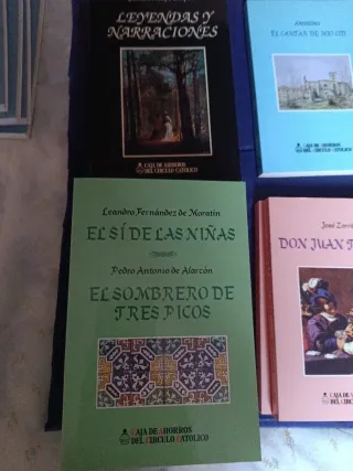 Leyendas y Narraciones Cantar de Mio Cid,Obra poética Jorge Manrique Lazarillo de Tormes Leyendas José Zorrilla,El si de las niñas y el sombrero de tres picos, Don Juan Tenorio, la vida del Buscón, obras De Calderón de la Barca , Fuenteovejuna 2 € cada uno
