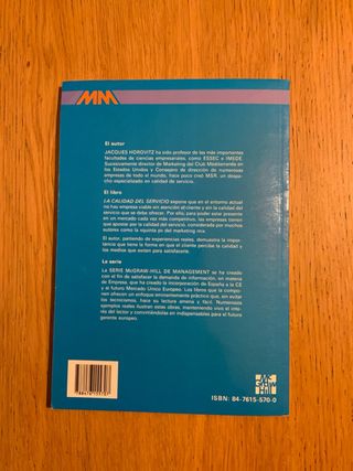 *Libro con una página deteriorada* LA CALIDAD DEL SERVICIO expone que en el entorno actual no hay empresa viable sin atención al cliente y sin la calidad del servicio que se debe ofrecer. Por ella, para poder estar presente en un mercado cada vez más competitivo, las empresas tienen que apostar por la calidad del servicio, considerada por muchos autores como la «quinta p» del marketing mix. El autor, partiendo de experiencias reales, demuestra la importancia que tiene la forma en que el cliente percibe la calidad y los medios que exiten para satisfacerle.