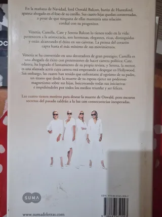 En la mañana de Navidad. lord Oswald Balcon. barón de Huntsford aparece ahogado en el foso de su castillo. Sus cuatro hijas quedan consternadas,. a pesar de que ninguna de ellas mantenía una relación cordial con su progenitor. Venetia, Camilla, Cate y Serena Balcon lo tienen todo en la vida: pertenecen a la aristocracia, son hermosas, elegantes, ricas, distinguidas y están alcanzando el éxito en sus carreras. La prensa del corazón capta hasta el más mínimo de sus movimientos.