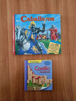 Ambos son de la editorial SUSAETA y son perfectos para descubrir la vida medieval. El precio es por los dos libros. - CABALLEROS es un libro de tapas duras con un guía de la vida de los caballeros medievales y plantillas en su interior para poder dibujar y recrear todas las escenas. - YO DESCUBRO CASTILLO MEDIEVAL es un libro con trasparencias para descubrir la vida en un castillo medieval, su defensa, los torneos y festines, etc..