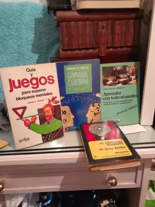 Libro guía y juegos para superar bloqueos mentales James L Adams 5€ libro gimnasia cerebral técnicas y ejercicios para mantener el cerebro en forma Monique le poncín 3€ el libro aprender con todo el cerebro estrategias y modos de pensamiento linda verlee Williams. 7€ libro el cerebro viviente W Grey Walter Son antiguos 4€ Se venden sueltos o por lote Precio lote