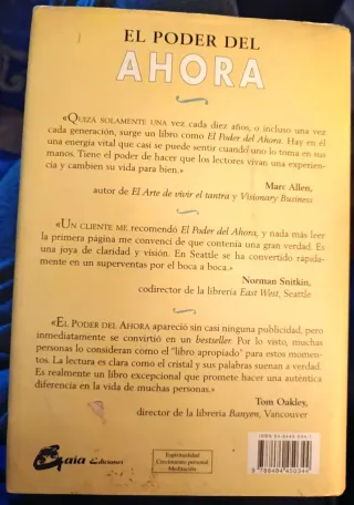 El poder del ahora es un libro de crecimiento personal y espiritualidad que invita a vivir plenamente en el momento presente. Disponible para recogida en mano (pinar de Chamartín, prosperidad u otra zonas preguntar) o envío.