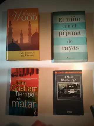 Lote libros diversos -TIEMPO DE MATAR John Grisham. -LAS VÍRGENES DEL PARAÍSO Bárbara Wood. -LA ISLA DE LOS CABALLEROS Toni Morrison. -EL NIÑO CON EL PIJAMA DE RAYAS John Boyne.