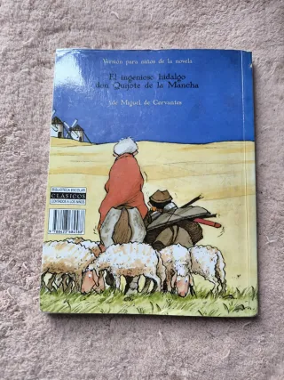 Vendo el libro de el quijote versión para niños,forrado y lo único que tiene en la primera página el nombre con tipex