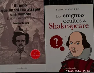 LOTE:Estos dos libros ofrecen al lector un viaje fascinante entre lo misterioso y lo intelectual, donde “El niño que intentaba atrapar a una sombra, desvelando a Poe” de Fermín Castro mezcla la sensibilidad poética con la intriga psicológica, mientras que “Los Enigmas Ocultos” de Shakespeare desafía la mente con acertijos y reflexiones profundas que resuenan más allá de la narrativa convencional. La compatibilidad entre ambos reside en su capacidad de despertar la curiosidad y la imaginación, jugando con la percepción, el misterio y la interpretación de lo oculto, LOS DOS X 6,50€, SIN RAYAS NI MARCAS NI LINEAS