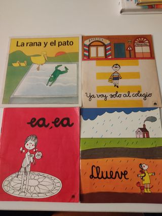 En buen estado. Los libros de lectura estan perfectos por dentro. La tapa del rosa y el verde mas desgastada. Perfectos para disfrutar los niños