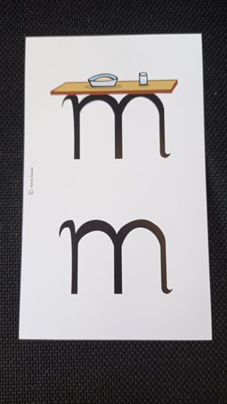 Método para aprender a leer jugando. A diferencia de otros métodos éste incluye la letra en el dibujo. Cuando se vea solo la letra, sin el dibujo, el niño lo recuerda y reproduce el primer sonido de la palabra (mesa, farola, rosa, elefante ...)