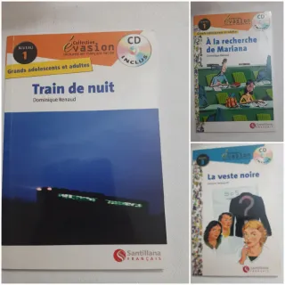 Libros en francés de de la editorial santillana con CDs incluido • Train de nuit • La veste noire • À la recherche de mariana