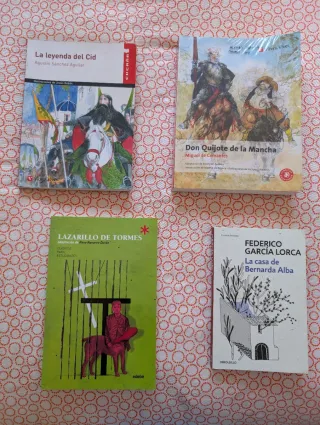 Los libros están en muy buen estado. Ideales para estudiantes de 2º, 3º y 4º de la ESO. El pack incluye: La leyenda del Cid (Ed. Vicens Vives, Cucaña) - Adaptación de Agustín Sánchez Aguilar. Don Quijote de la Mancha (Ed. Vicens Vives, Clásicos Adaptados) - Adaptación de Eduardo Alonso. Lazarillo de Tormes (Ed. Edebé) - Adaptación de Rosa Navarro Durán. La casa de Bernarda Alba (Ed. Debolsillo) - Federico García Lorca. 💸 Precio por el lote completo (posibilidad de vender sueltos, preguntar precio).